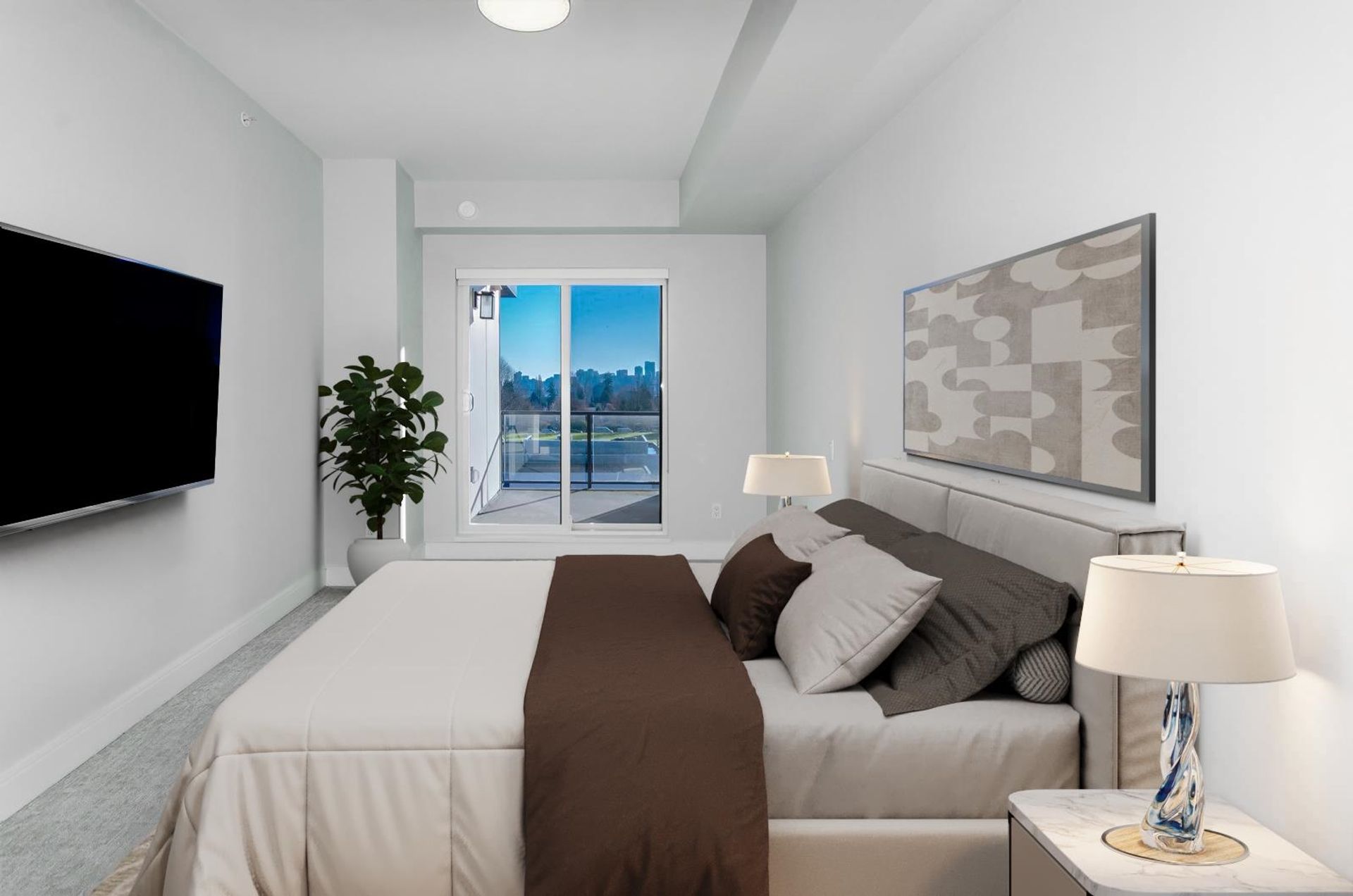 Top-floor living at Tatlow Homes, this bright penthouse offers 2 bedrooms, 2 bathrooms, and a smart den ideal for a home office. Thoughtfully finished with quartz countertops, laminate flooring, full-size stainless steel appliances, and modern roller shades. Oversized bay windows flood the space with light, while two private balconies showcase sweeping views toward Downtown Vancouver. The generous primary suite includes a walk-through closet and spa-like ensuite with dual vanity, soaker tub, and frameless glass shower. Steps to Park Royal, Ambleside Beach, and Lions Gate Bridge. Includes 1 parking and 1 locker
