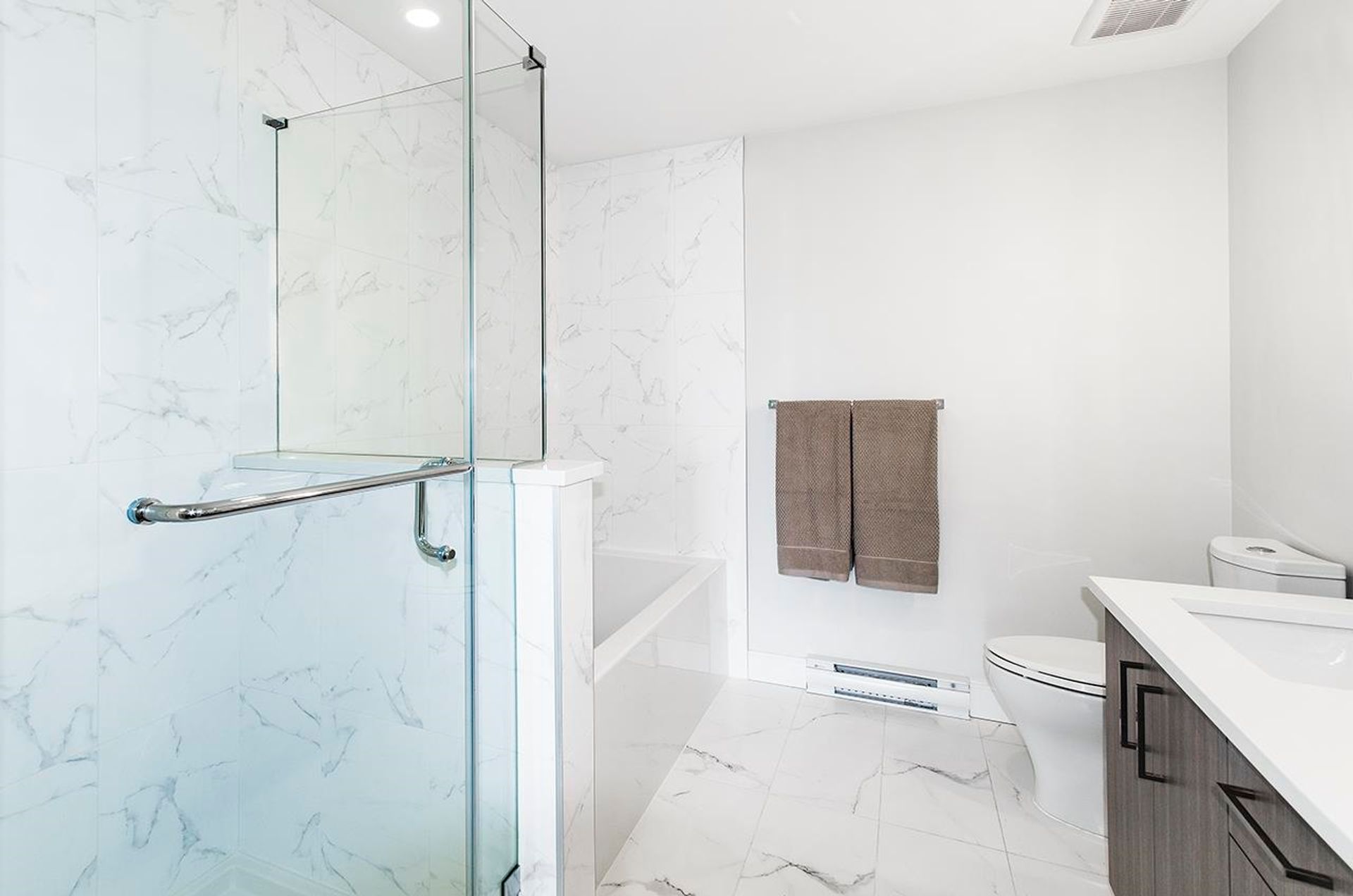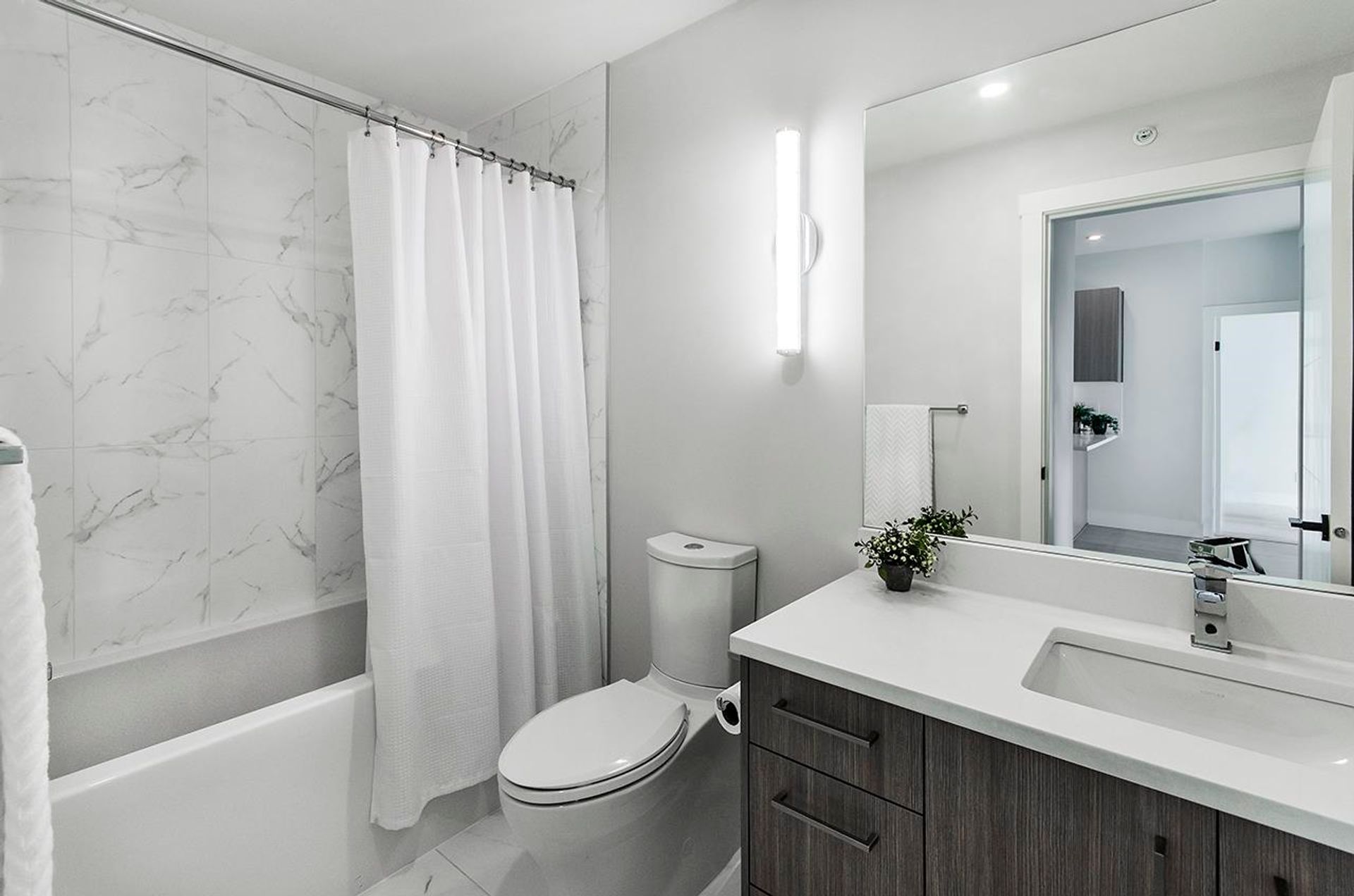 Top-floor living at Tatlow Homes, this bright penthouse offers 2 bedrooms, 2 bathrooms, and a smart den ideal for a home office. Thoughtfully finished with quartz countertops, laminate flooring, full-size stainless steel appliances, and modern roller shades. Oversized bay windows flood the space with light, while two private balconies showcase sweeping views toward Downtown Vancouver. The generous primary suite includes a walk-through closet and spa-like ensuite with dual van…ity, soaker tub, and frameless glass shower. Steps to Park Royal, Ambleside Beach, and Lions Gate Bridge. Includes 1 parking and 1 locker