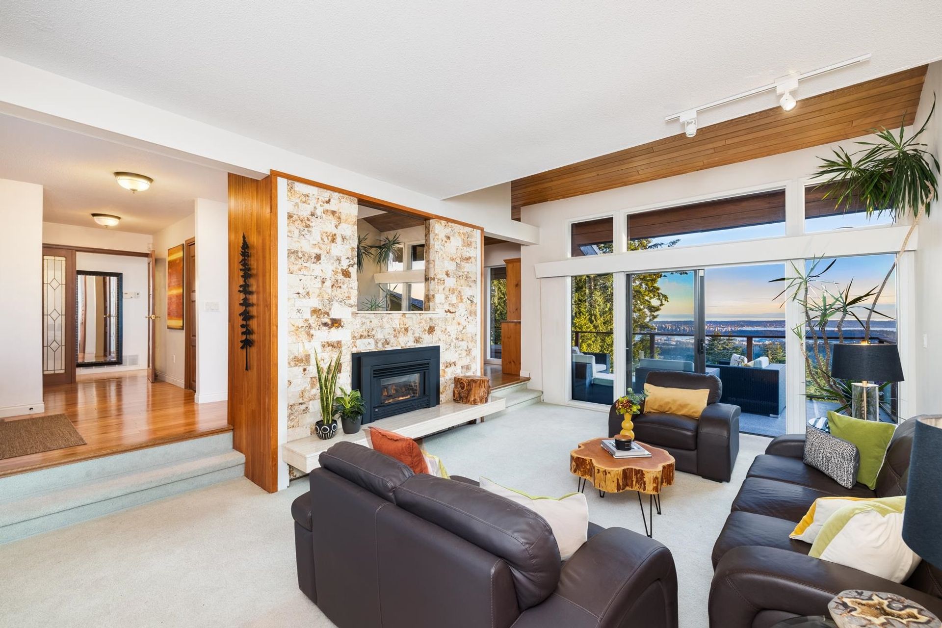 ONE OF A KIND WESTCOAST BEAUTY! Experience this forever-view property & fall in love w its setting & floor plan. Enjoy jaw dropping ocean & city views from 3 decks & every rm in the house. A sprawling main flr w sunken living room, family room off the kitchen & a magical sunroom all flowing out to a spacious sunny deck. 3 bed up w cedar vaulted ceilings & 2 bed down. Another family room down w wood F/P & flowing out to backyard - all w the wow view. A 2 bed suite down ideal f…or family or income generator. On a quiet deadend st w double garage & huge storage above. Trails at your doorstep, Grouse Mtn min away, Braemer Elem & Carson Graham Sec. Enjoy peaceful sunshine by day & sunsets that people dream of catching every single night from your deck. Oh and no powerlines! OPEN SAT2-4 &SUN 12-3
